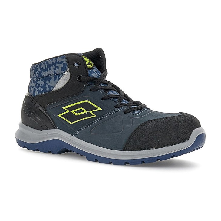:: Zapatos Seguridad Lotto Hit 200 Mid S3 Hombre Azules Negras Verde | QD238443R2